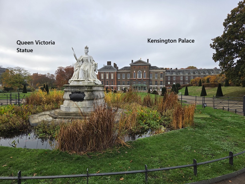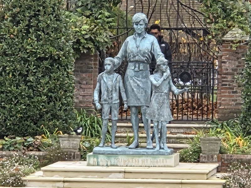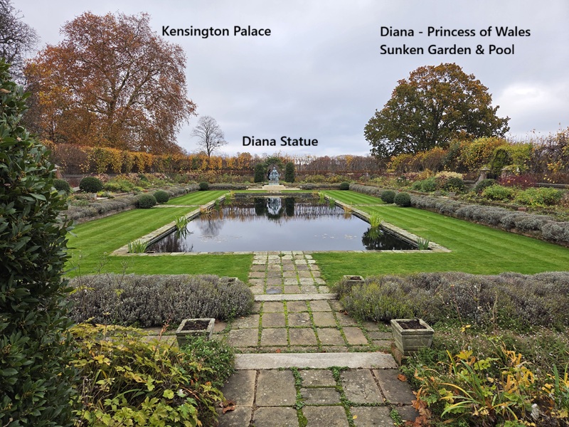 8/11/25 Another HUGE day with so many photos, including Westminster Abbey. Keeping to my body clock I showered, packed my day bag & completed my mandatory protein enriched brekky. Having a big protein brekky is a must for anyway touring & walking as much as I do plus frequent hydration. I headed off West, the opposite way I have been starting my days, & seeing the other end of Hyde Park to view Kensington Castle, Princess Diana’s residence for years & her favourite sunken garden & pond where a now famous statue of her, dedicated by Prince William stands. Coming from the direction I took you come across the gardens, sunken pool & statue prior to seeing Kensington Castle. Also, numerous squirrels being silly in thick Autumn leaves. Certainly, brings some laughs & smiles.