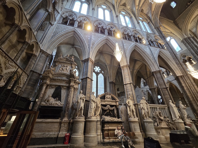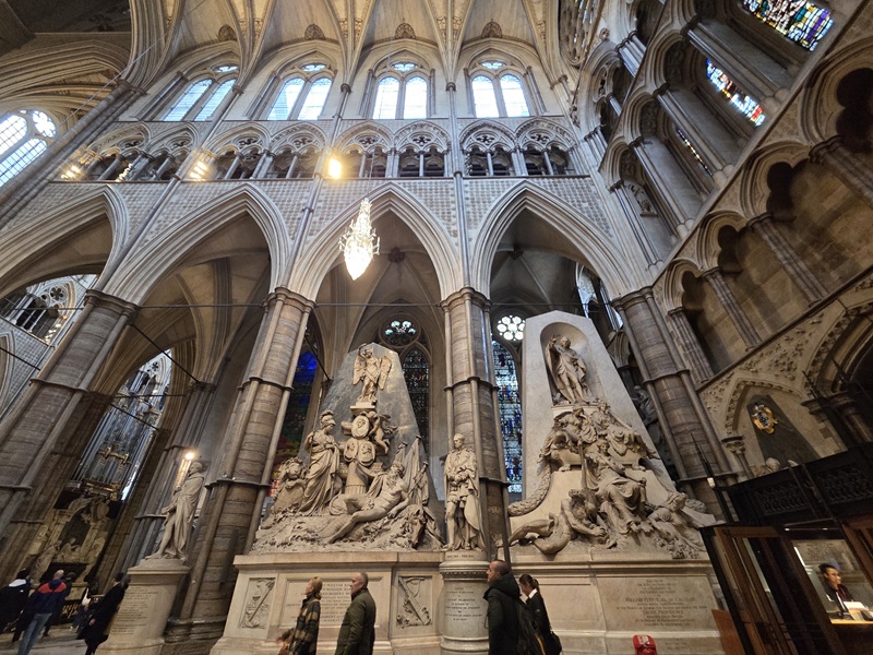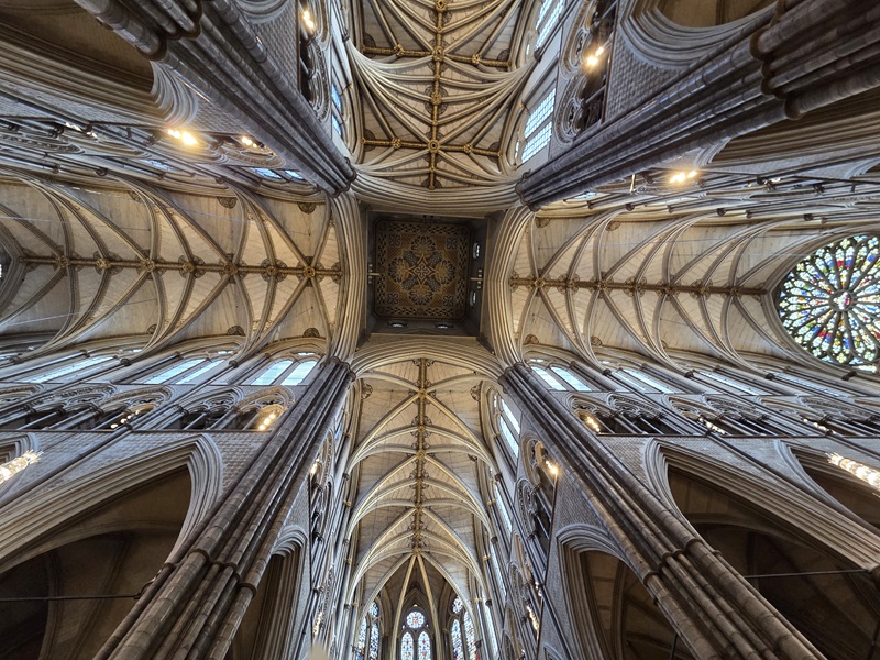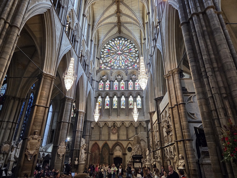 The Abbey is amazing, but for me it was predominately, a crypt for the volume of tombs inlaid within. Some 3,000+ burials & 600 memorials lie within the Abbey. It is an architectural masterpiece, particularly from 13th to 16th centuries where many royals, dignitaries are entombed & royals commemorated. No-one knows when the first church was built on this swampy, previously Thorney Island site, however it is estimated over a thousand years ago. History became more factual once King Edward, The Confessor, started his church. To be absolutely clear you could spend 4hours minimum here just going through the entire Abbey & looking at everything that catches your eye. The Great Rose Window & the other glass windows are a standout but as you see the works involved in the construction of the ceilings, some 102′ above the floor & well, that is beyond amazing.