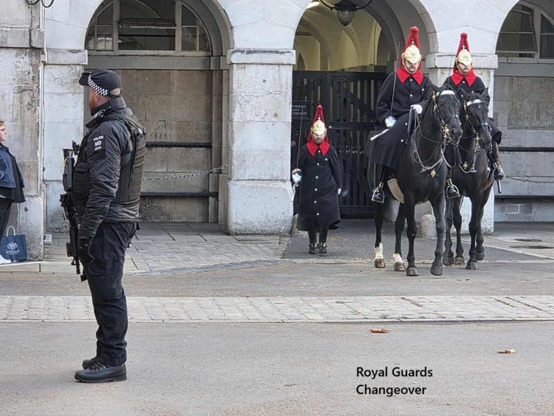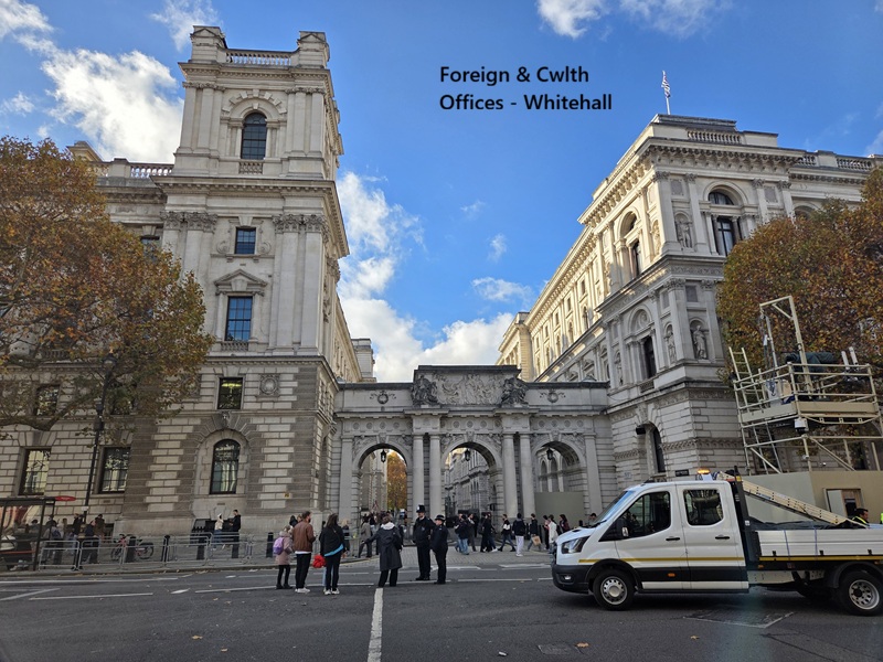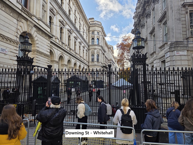 Walking away from the river slightly, I walked from the other end of Parliament St to view Downing St, but with the usual security & TV camera setups no access was freely available. Whitehall is the Parliament House & other main government departments. House of Commons & House of Lords area, etc are over to the West behind Big Ben & Westminster Abbey closer to the River Thames.