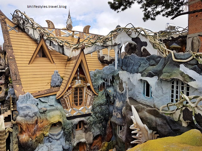 Chung pulled into this small shopping centre past the lake to get some fuel for the bike and catch up with some locals. Chung directed me to a weatherboard type ‘chicken coop’ structure elevated off the carpark pavement & located central to the carpark. Walking around to the other side with wire mesh sides I jumped back in the natural course of preservation action. Yikes!!! It was a snake, .. a HUGE Reticulated Python!! I am definitely not a snake lover, or even an admirer of snakes so my reaction was real & instant!!!