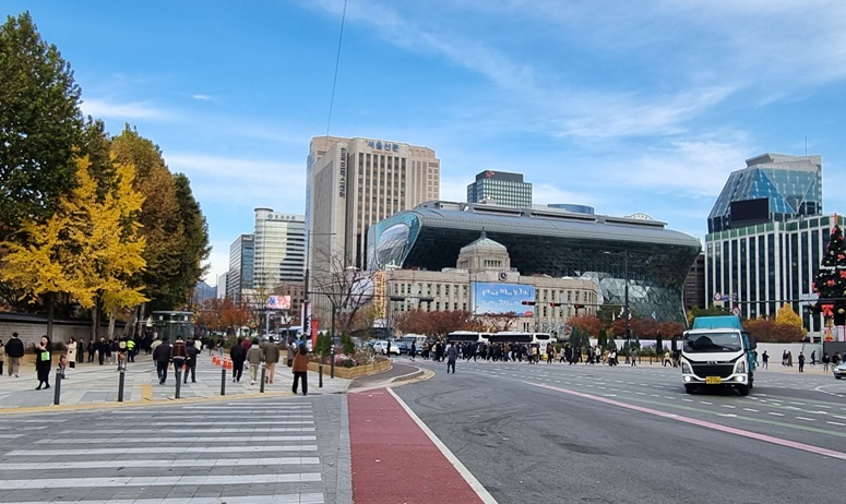 We depart past the neo-fururism architecture styled monolith Dongdaemun Design Plaza (DDP) designed by Zaha Hadid & Sameo & completed in 2011. Haha passed away during COVID. This building won the SEGD Merit Award in 2015 @ a construction cost of $451Million AUD. It resembles a large stainless-steel submarine at first glance & apologies in trying to get a good photo which really is a miracle to do so. The was no information to confirm what this building housed or was used for. Look hard into the RH photo below.