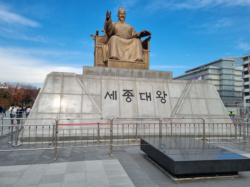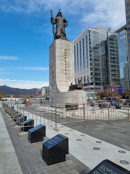 From my previous planned daily walks alone to the South, we head off from our AMID Hotel in the opposite direction (North) by bus, for our first stop just 10mins away where we view the Heungnyemun Gate (centre) from the side entry to the Gyeongbokgung Palace & the 15min rendition to the changing of the Royal Guards Ceremony. There is no royal family existing here in Sth Korea now so with tradition dating back through the last 500years the guard ceremony has been resurrected to keep their culture & history relevant. As per common practice, the young locals all get dressed in traditional costumes for free entry plus it really makes everything wonderful to enjoy. To hear the big drum over the other drums was amazing & strong & be good in a rock band. Lol. I had great difficulty in getting a good photo, such was the volume of onlookers. It was difficult to understand the ceremony of the procedure however, it was done in such precision you could only admire the exhibition & the participant’s dedication.