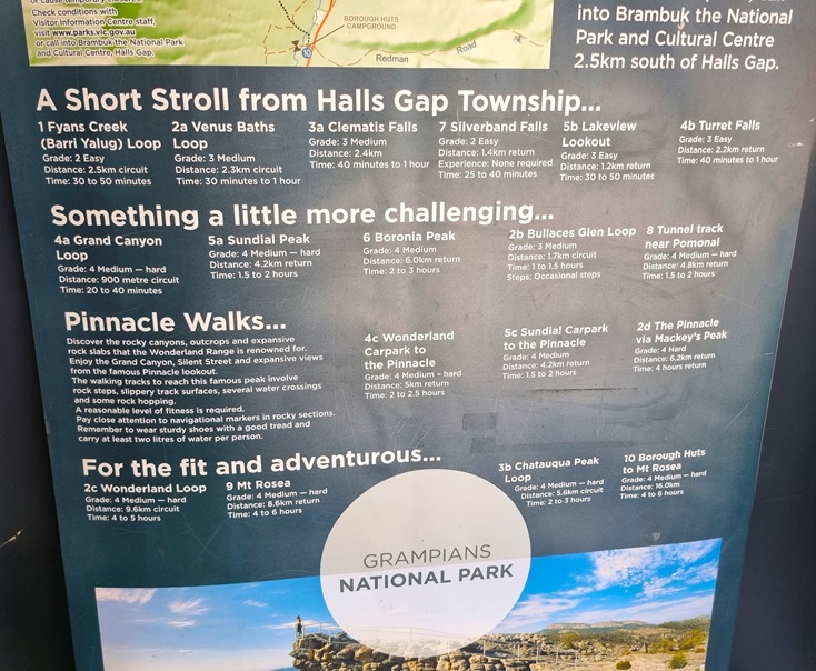 With only nature waking us up we both had a great sleep & the most relaxing morning with an easy breakfast. I went for a walk around the small lake and to see where the emus were grazing while EGR used the van’s amenities & got dressed. Without much-a-do we headed back into Halls Gap for the major accessible sites of the Grampians. There are just too many locations to see, so you need far more days than what was allowed for us. Some main sites we couldn’t get to, were The Pinnacles, Mt Sturgeon, Chataqua Peak, Grand Canyon to name a few. There are over 100 rock climbing sites & treks of all different grade ratings.
