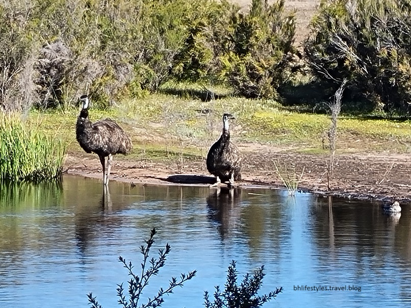 We also have so much food to sort out for our last day (dry & fridge) & it will be a challenge to consume it all or throw it out into a waste bin later. Anyway, we escaped out of Lakeside Caravan Park after the boom gate & turned right to head out onto the service road & then onto the main road however within the first 200m I had to brake very hard to avoid 2 large adult emus stressing out with my vehicle approaching alongside the road. The male, of course, I accept was the most stupid in overreacting. Lol!! The female was slightly smaller in statue & knew her partner would ‘control’ things … eventually. They were healthy & magnificent & were two of many about this park area at this time of the day. These two were the biggest I have ever seen. We were not able to get a photo of them either which was very unfortunate. EGR, myself & the van (loose items shifted to the front) all received a huge shock at first but then soon overjoyed with the wonderful close up nature.