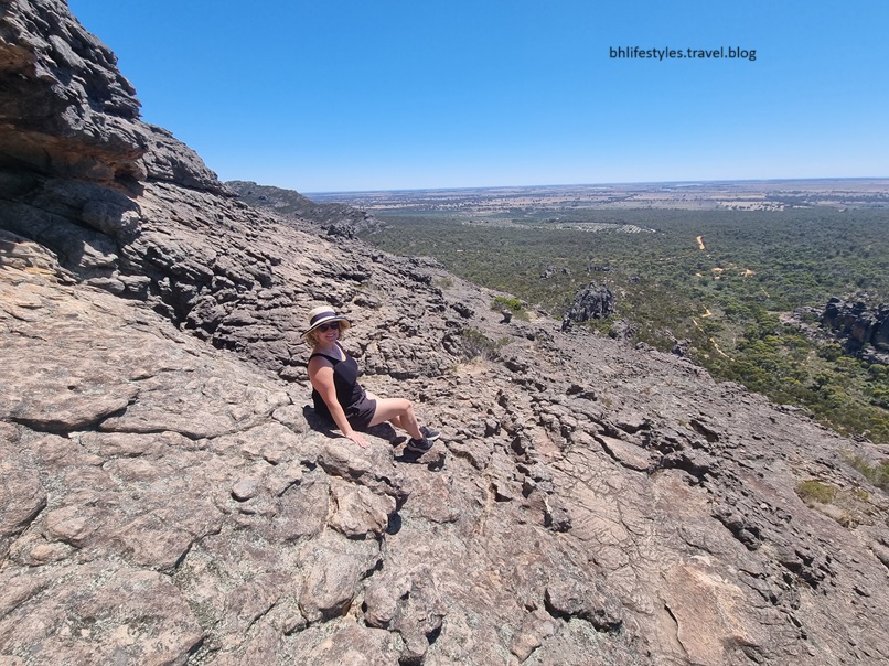The above photos are of Boroka Lookout with Lake Lonsdale in the background & Wartook Reservoir much further into the distance to the left and towards Mackenzie Falls area The bottom 2 photos shows another rock outcrop where EGR posed for the cameras again outside of the barricades. Yikes!!! I couldn’t do it!!!