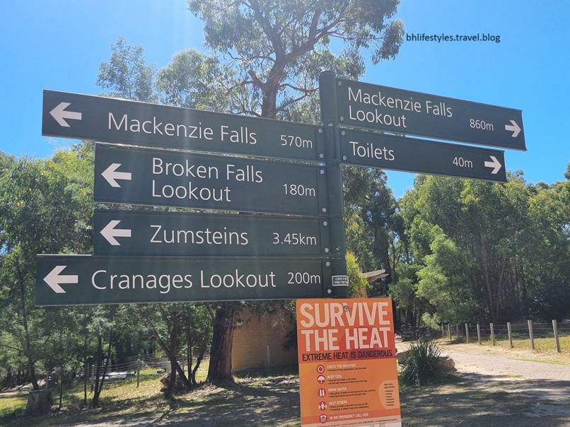 We managed to fit in the viewpoints of Broken Falls, Burrong Falls, Reed’s Lookout after much horizontal walking & finally Boroka Lookout just before Halls Gap township for the end of day. Totally buggared.