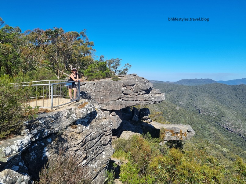 The above photos are of Burrong Falls Lookout & those rock outcrops where EGR is standing are where she sat out there when YHA were doing a tourist photo shoot & she was their model. I told her she was crazy to be out there (this was before the balustrade railings were erected). She was excitied to be reliving this adventure I’m sure.