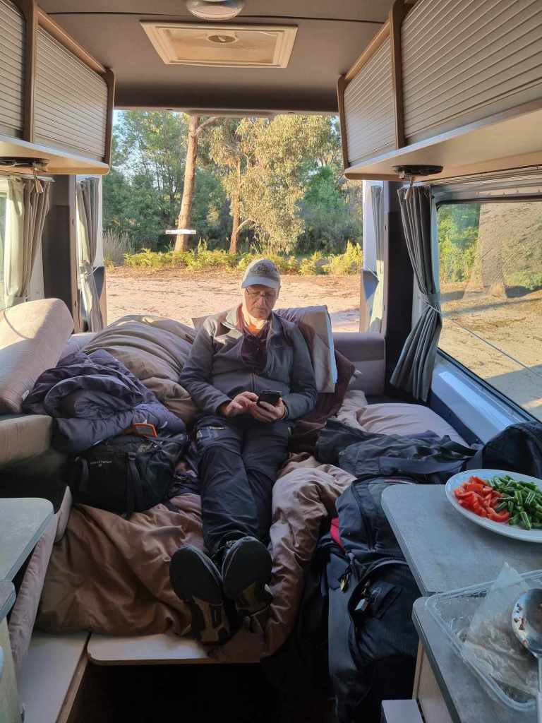 With darkness approaching showers became the first priority, then a full dinner to use up as much of our stored food as possible, for tomorrow is our last day on the road. After dinner, EGR was quick to retire to her swag, for it has been a huge day for her. I propped myself up in bed to blog my Polarsteps with the very frustrating poor internet reception. By the time I had finished I had forgone a lot of my beauty sleep.